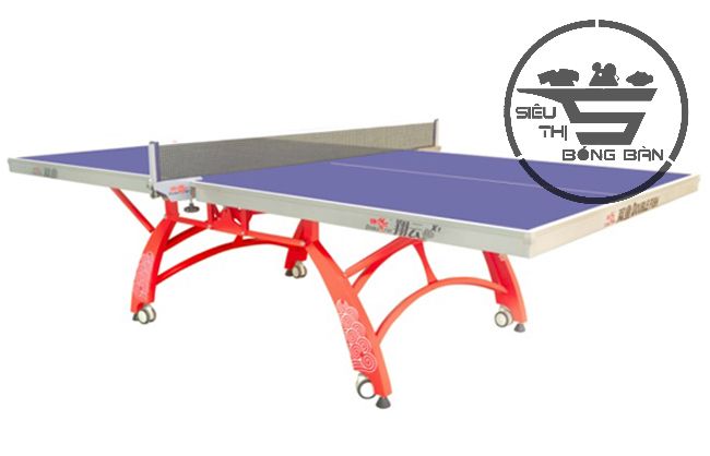 Mặt bàn được làm từ chất liệu gỗ MDF nhập khẩu nguyên khối cao cấp cho độ mịn và độ nảy bóng đều, đây là loại gỗ chuyên dùng sản xuất bàn thi đấu ở các giải đấu lớn trong nước và quốc tế. Lớp sơn phủ màu xanh tím đặc biệt có khả năng chống lóa giảm độ bóng đến mức tối đa, hỗ trợ tích cực cho đôi mắt người chơi.