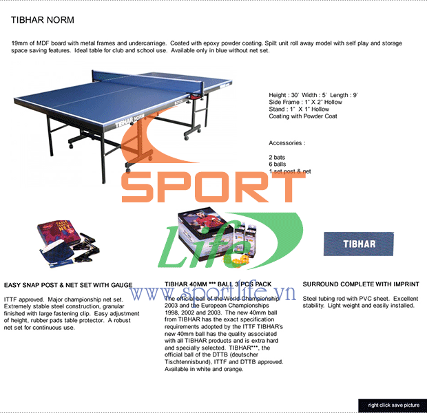 Bàn Tibhar Norm được nhập khẩu nguyên chiếc từ Malaysia.