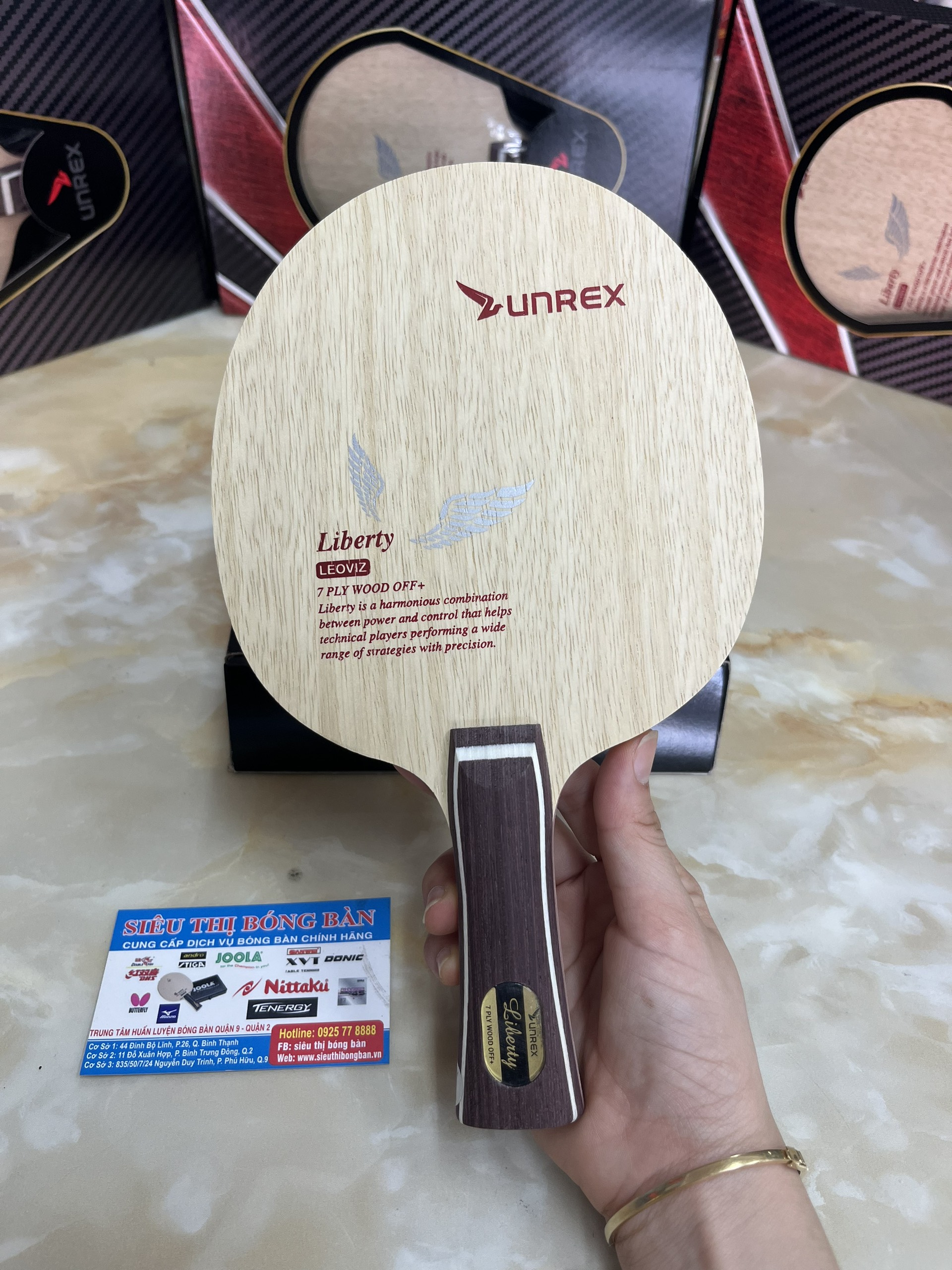Hệ thống Cân Bằng Trọng Lực - Weight Balancing System (WBS): Trái ngược với Công nghệ Đàn Hồi Tối Ưu OFT, Hệ Thống Cân Bằng Trọng Lực bổ trợ chủ yếu cho giơ đánh ôm bàn tấn công nhanh. WBS giúp cây vợt cân bằng hơn, nâng tốc độ xoay trở lên đáng kể và rút ngắn lại thời gian phát lực đánh bóng.